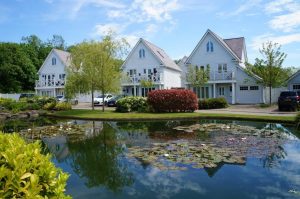 This is a new purpose built development set on the outskirts of a small Kent village. The development is currently built in a colonial style with timber cladding. Later phases have moved towards a more traditional Kent hanging tile style of construction. There are currently around 850 properties with plans for a further 350 properties before this development is complete.
